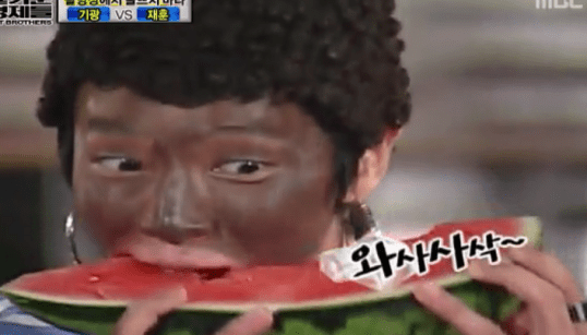 But apparently it is totally okay to make fun of people you know nothing about in South Korea. Because SK is such a homogeneous country and there aren’t a lot of foreigners around or something. And they’ve never heard the term blackface and don’t know its wrong.