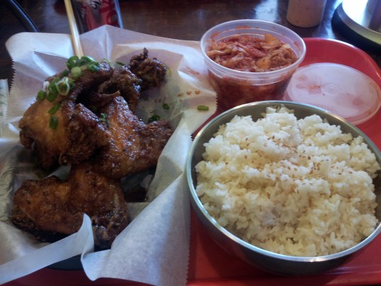 I should have split the side dishes with my friend. Most of the rice and the kimchi went to waste which made me sad. But they will give you a to-go container for your extras and the kimchi is already packaged to take home if you’re the kind of person who doesn’t have three jars of the stuff at home. So, I could have saved a little money by paying attention to those details. My fault. But $9 for those wings? WORTH EVERY DAMN PENNY.