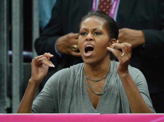 The Diamond Encrusted with a Sweet Caramel Center Medal for being the most “into it” dignitary in the stands goes to…FLAWLESS FLOTUS Michelle Obama.